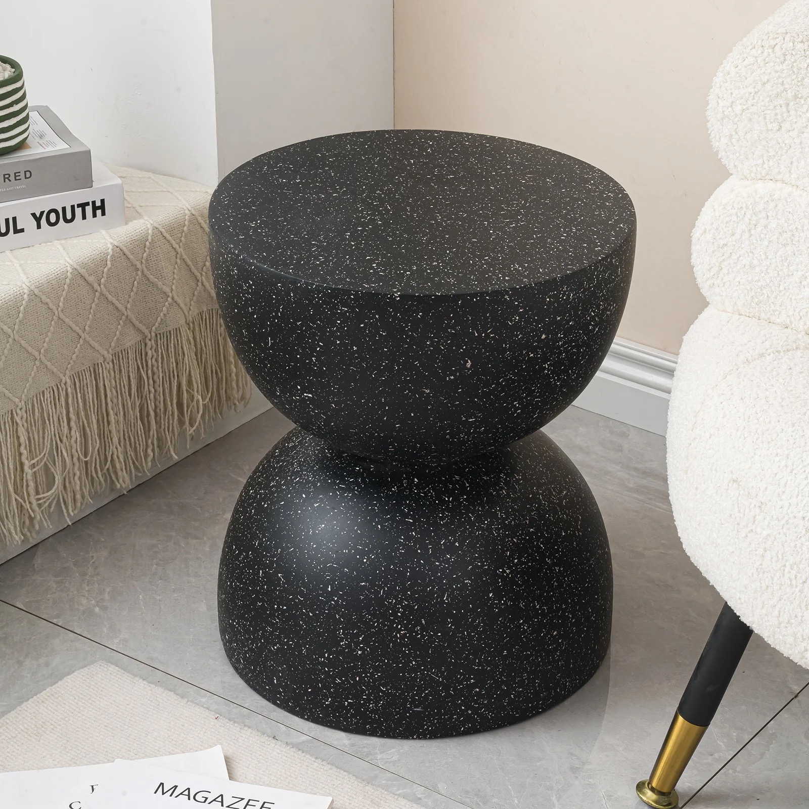 Add a touch of modern style to your indoor or outdoor space with this stylish garden stool, drinks/plant stand or side accent table. The hourglass silhouette design with imitation terrazzo finish is both stylish and multi-functional, making it a great addition to any room of your home or by the pool, barbie and deck. Whether you need a place to rest your book and drink or to display your plants, this stool is up to the task. Made from housing construction grade fiberglass and MGO blend.
